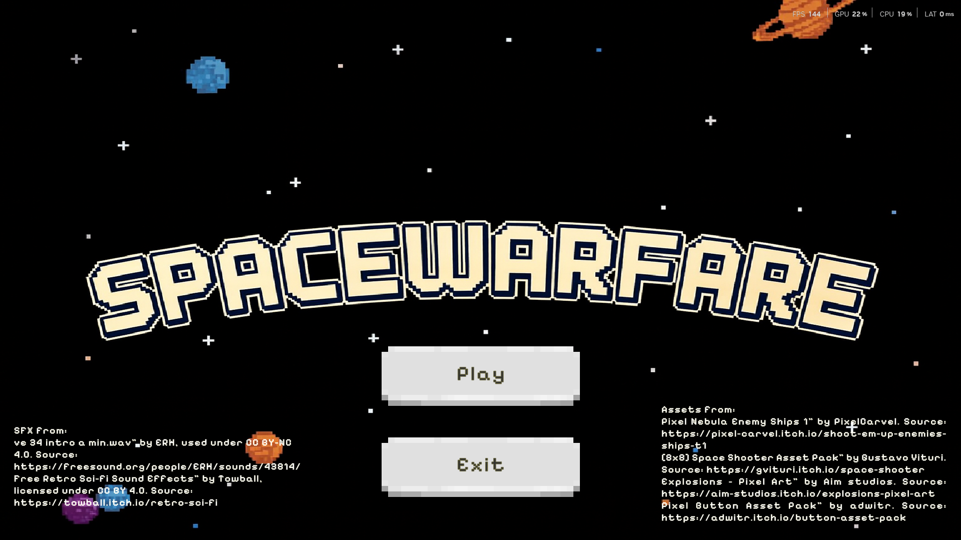 Space Warfare is a 2D endless shooter where you take control of a lone pilot fighting through waves of enemies and boss. Test your reflexes, survive as long as you can, and push your high score to the limit!